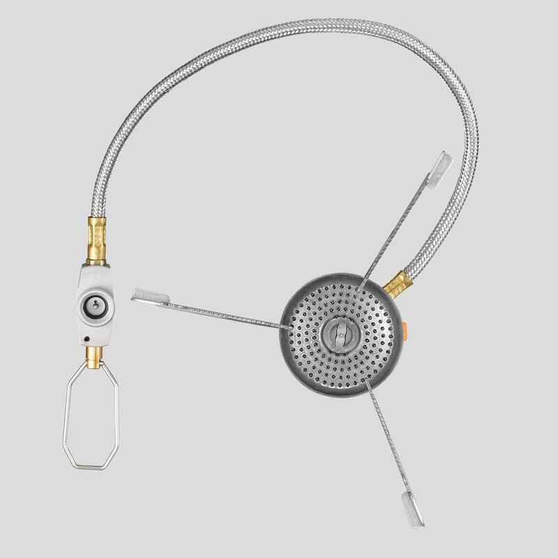 Poser le réchaud sur une surface plane et dégagée. Visser l’embout du câble sur la cartouche et la poser ainsi raccordée à distance du réchaud. Ouvrir le robinet de réglage du débit, enclencher le piezo (plusieurs fois si nécessaire). Votre réchaud est allumé.