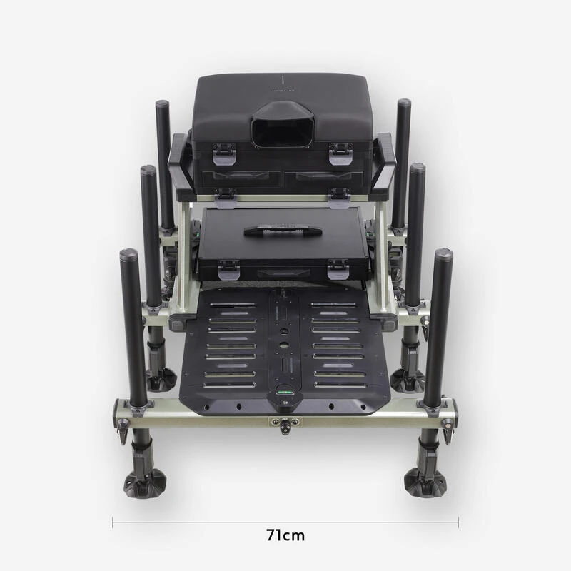Station de pêche spécialement développée par notre équipe de concepteurs pour le pêcheur au coup qui souhaite être confortablement installé au bord de l’eau.L’utilisation du « Concentric System CS » sur ses pieds lui donne un avantage pour un réglage facile et rapide sur la berge !